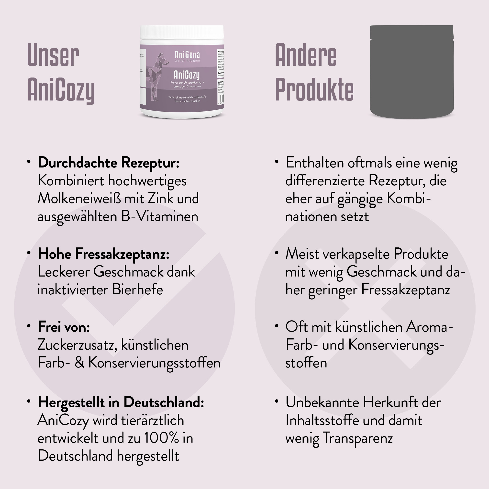 Ob bei Veränderungen im Alltag, neuen Umgebungen oder Phasen erhöhter Beanspruchung, AniCozy kann dazu beitragen, dass dein Hund sich rundum wohlfühlt. Tierärztlich entwickelt und in Deutschland hergestellt, steht AniCozy für Qualität, Sicherheit und Vertrauen.